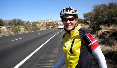 Started having some severe pain in my left knee just before lunch, which continued to plague me for the rest of the day. Certainly concerned, considering we ride 90 miles tomorrow. Michelle was having pain in her right knee, so between the two of us we had a good set of legs, as well as a bad one. Thankfully we had Ben and Scott to pull us the last 15 miles, otherwise we might still be at the side of the highway somewhere. But after 3 days of terrible coffee we were motivated by the Starbucks we knew was waiting for us in Willcox. As soon as we got in Scott made some adjustments to my saddle position, since we figure that might be the source of the knee issues. It’s amazing how the smallest problem with your position can really mess you up, especially with prolonged riding.