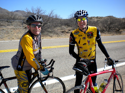Such a mixed bag of a day, with every type of riding imaginable. Slow, gradual uphill grinds to screaming downhills and everything in between. Awful, painful moments contrasted with laugh-out-loud fun. What a day.Another post-ride trip to Starbucks then dinner with our new friends Didier and Taya at a neighboring hotel with a half descent restaurant. Ended the day with a nice leg (and knee) massage, which will hopefully help again for tomorrows’ ride back to Tucson. Should be a good one, not much climbing (1,800 feet), and about 80 miles of riding.