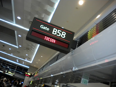 On route to Tucson, via Denver. Finally. Waiting at the Winnipeg Airport was boring. Really boring. I sat like a refugee in the International Departure Lounge for an hour or so, having a forty dollar rubber sandwich, with so much anticipation I thought I would bust. The Winnipeg Airport is horrid, a total embarrassment. If I could help them finish the new terminal, I would. And I would happily drive the bulldozer that takes the old one down.